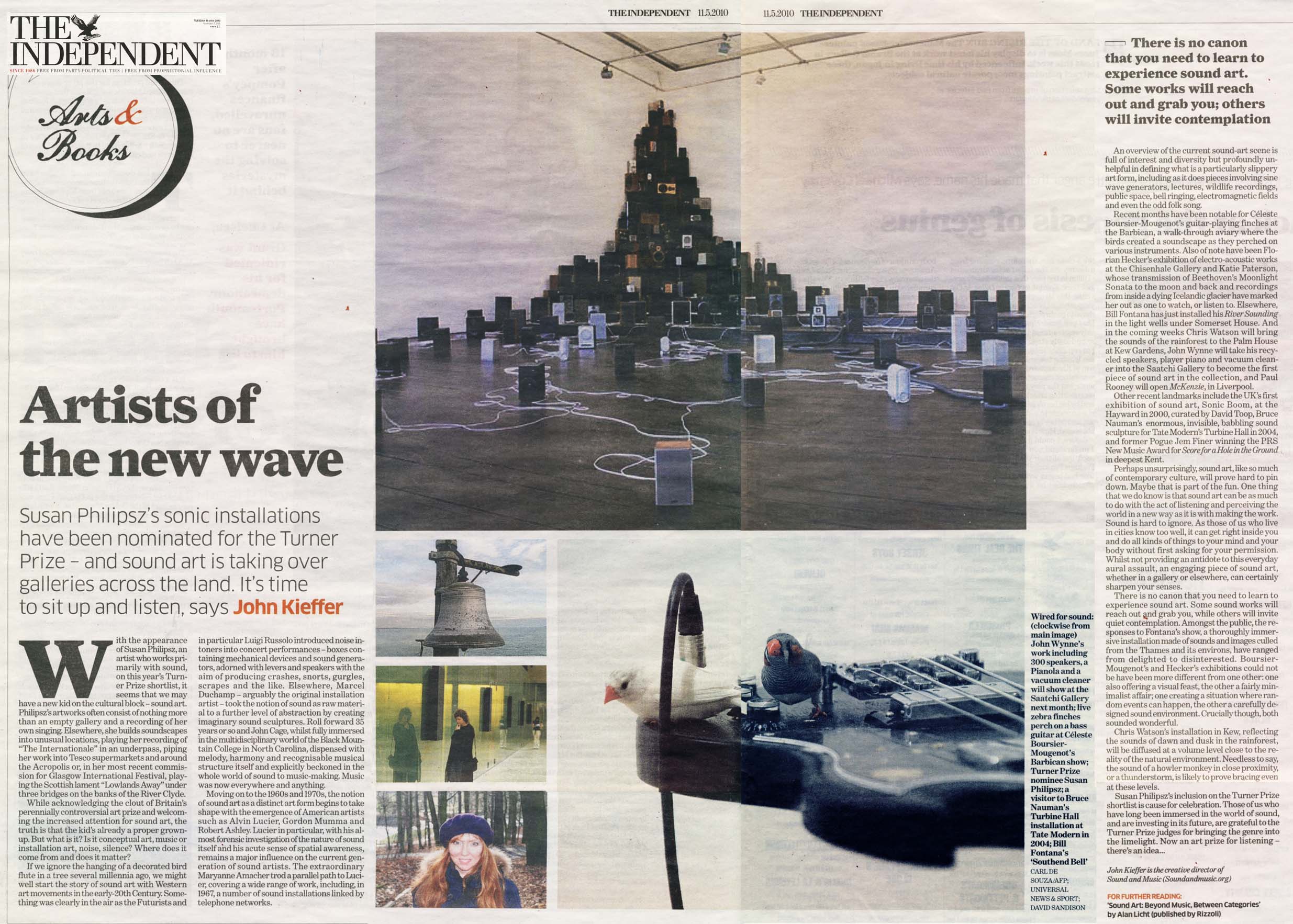 John Wynne's Installation for 300 speakers, player piano and vacuum cleaner is at once monumental, minimal and immersive. It uses sound and sculptural assemblage to explore and define architectural space and to investigate the borders between sound and music. The piece has three interwoven sonic elements: the ambient sound of the space in which it is installed, the notes played by the piano, and a computer-controlled soundtrack consisting of synthetic sounds and gently manipulated notes from the piano itself. Because none of these elements are synchronised with each other, the composition will never repeat. The music punched into the paper roll is Franz Léhar's 1909 operetta Gypsy Love, but the mechanism has been altered to play at a very slow tempo and the Pianola modified to play only the notes which most excite the resonant frequencies of the gallery space in which it is installed. Sound moves through the space on trajectories programmed using a 32-channel sound controller, creating a kind of epic, abstract 3-D opera in slow motion.